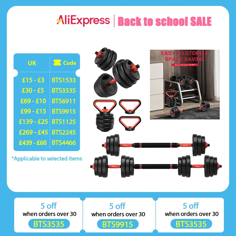 3-in-1 Dumbbells Set 20 kg Adjustable Dumbbells with Extra Barbell Bar Plastic-Coated Weight Plates Fitness Exercise Home Gym