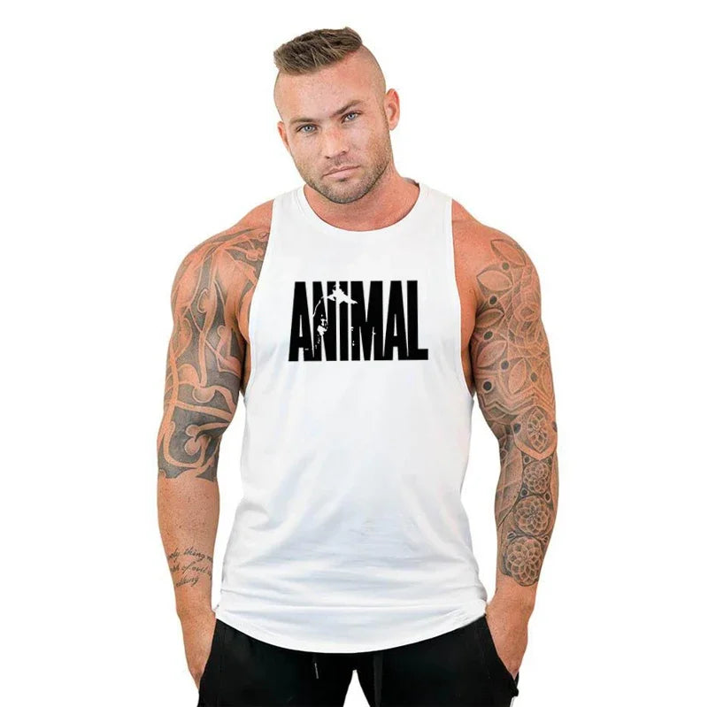 Animal Letter Gym Tanktop Men Fitness Clothing Men's Bodybuilding Tank Tops Summer Gym Clothing for Male Sleeveless Vest T Shirt