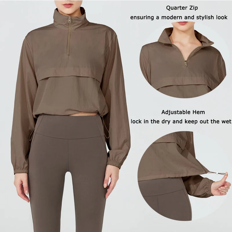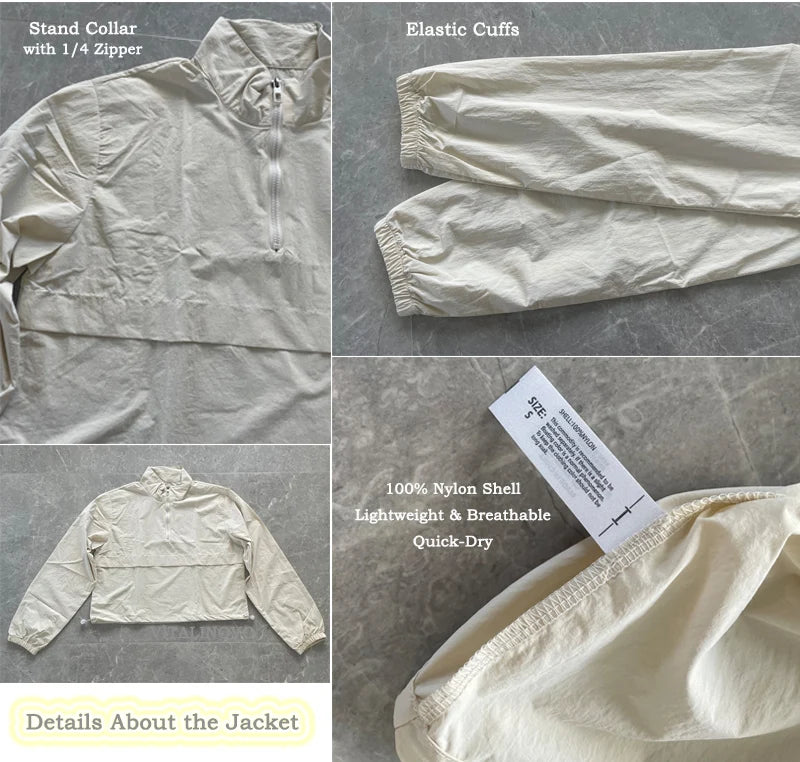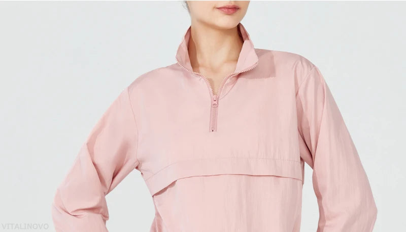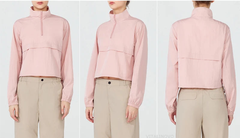 VITALINOVO Women's Athletic Jacket Lightweight Quarter Zip Pullover For Golf Hiking Running Windbreaker UPF50+ Waterproof Jacket